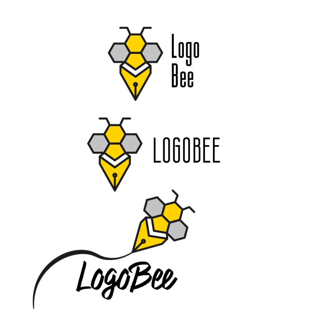 LâidĂ©e : fusionner la prĂ©cision du design (plume de stylo) et lâesprit de crĂ©ativitĂ© (lâabeille) pour symboliser la rigueur et la productivitĂ© dâune agence graphique.
